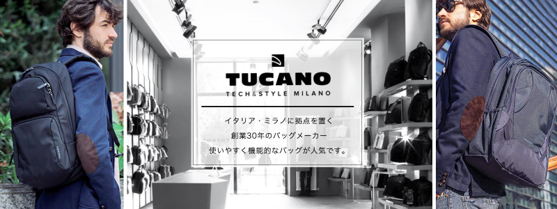 TUCANO / ツカーノは、イタリア・ミラノに拠点を置く創業30年のバッグメーカーです。ノートパソコンが入れられるビジネスバッグ・リュックのシリーズが豊富で、ノートパソコンの規格サイズに沿った幅広いサイズ展開と、使いやすさやセキュリティ面も考慮した機能的な仕上がりになっております。