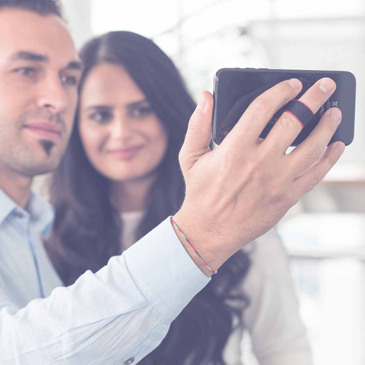 Finger Strap / フィンガーストラップは、オプション商品も発売されており、マグネット式のスタンド(固定台)と組み合わせて使うとハンズフリーになり、料理中などに動画をみたりレシピサイトを見る♪といった使い方もできるようになります。