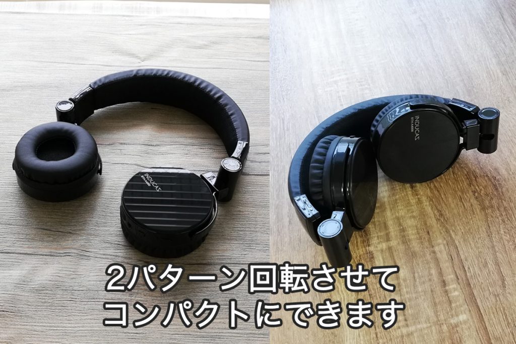 この商品は2パターンの折りたたみが可能で、このように平らにも出来るし、耳の部分を中に折りたたむとコンパクトにすることができます!
