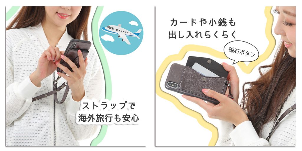 iPhoneXs/X兼用タイプとiPhone8/7/6s/6兼用タイプの2サイズ展開!