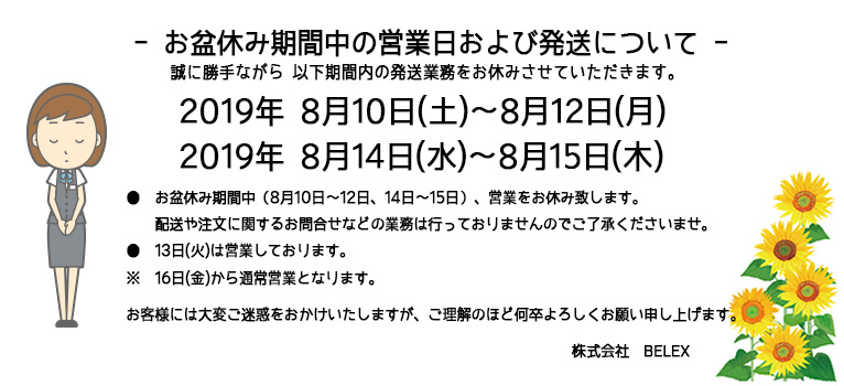 お盆休み期間中の営業日のお知らせ