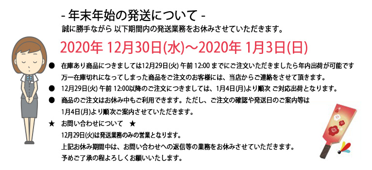 年末年始の営業日および、商品発送に関するお知らせ