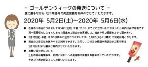 当店は、ゴールデンウィーク期間の5月2日(土)〜5月6日(木)まで、営業をお休み致します。