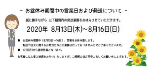 お盆休み期間中、営業をお休み致します。